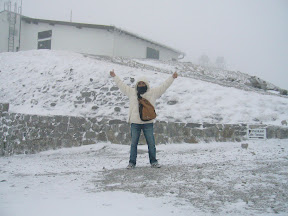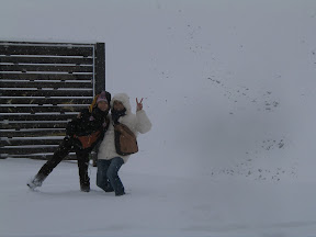 出左纜車, 好high呀!!! 落好大雪, 近乎風暴!! 咁既情況當然一個滑雪既人都冇啦. 行出去d雪係dou口dou面咁打埋黎.