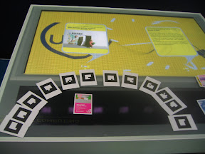 呢個係一個有關小發明家比賽既corner. 一張card代表一個小朋友, 放一張card 係下面個screen度(好似紅色呢張咁), 上面個screen 會show o個位小朋友既發明, 轉o個張card 90度, 就有套短片, 再轉90度, 又有其他野睇.